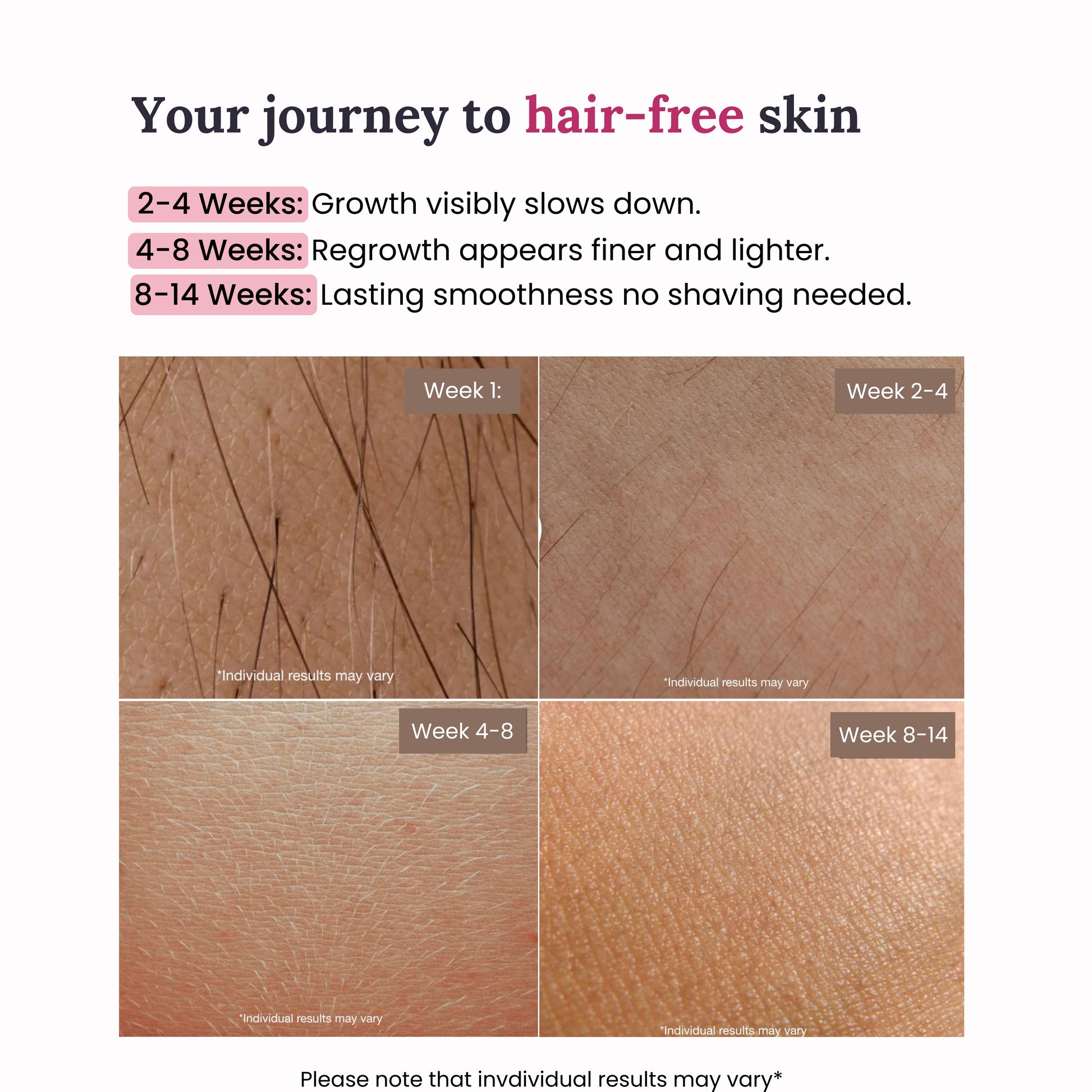 - Enjoy the results: Notice smoother, slower-regrowing skin over time.