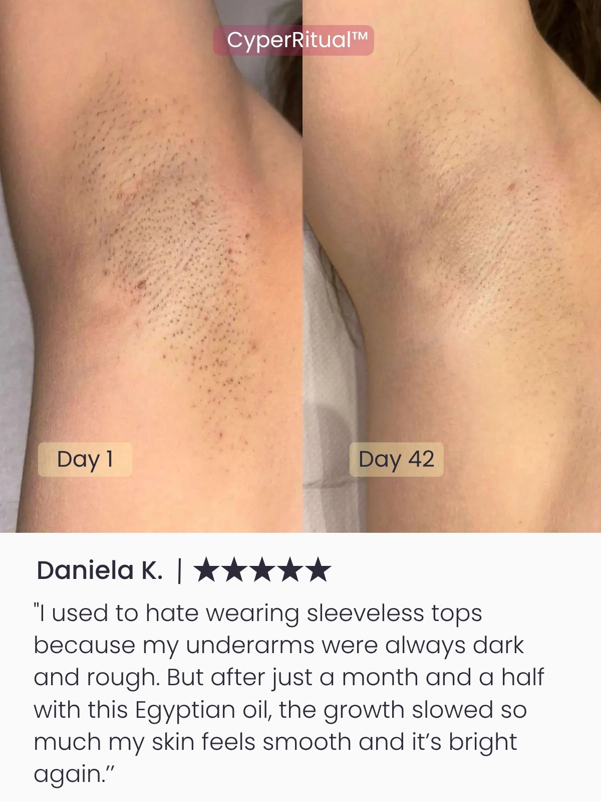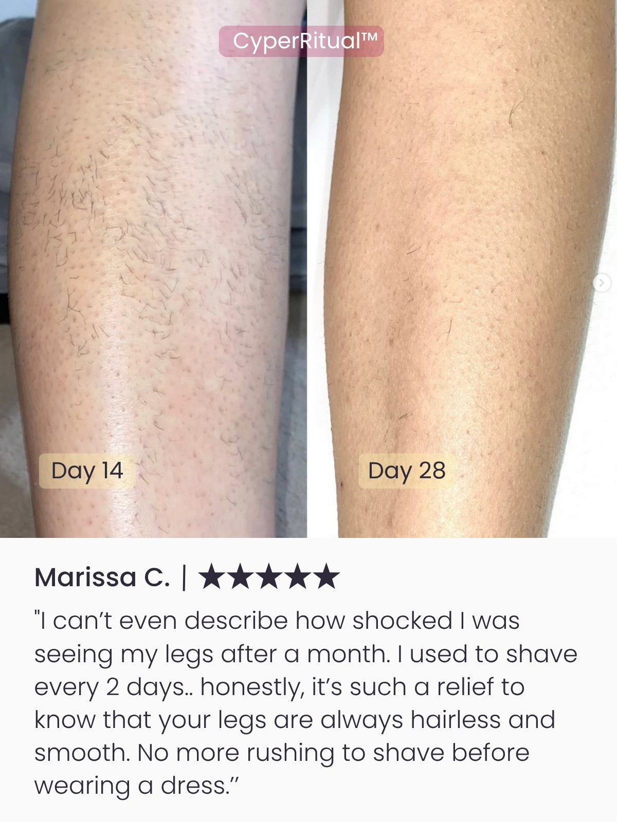 Backed by clinical testing, CyperRitual™ delivers visible hair-reducing results: